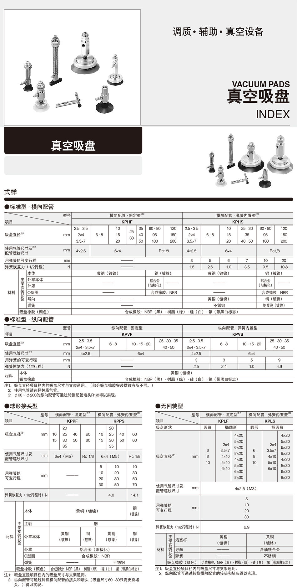 真空吸盘横向配管固定型KPHF系列 适合小型、质量轻的搬运系统。不会误吸取,有超凡的耐久性能。 根据工件的大小、状态进行形状、尺寸、材质的选择,装配金属器件也有四种 另外备